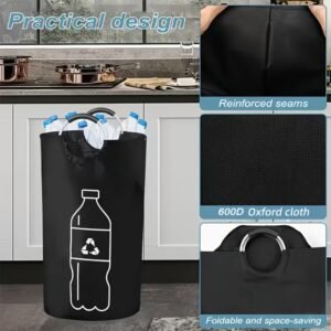 Składany kosz na odpady o dużej pojemności | Cylindryczna konstrukcja z otwartym górnym otworem, wielofunkcyjny kosz do przechowywania butelek z tworzywa sztucznego, oszczędzający miejsce organizer, trwały i łatwy w czyszczeniu, nie wymaga prądu, odpowiedni do użytku domowego, nowoczesna estetyka